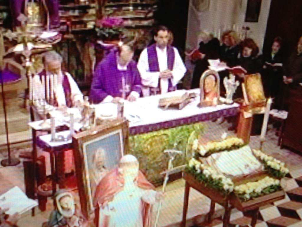 Mentre entra la reliquia i sacerdoti e la gente stanno recitando il s. Rosario, la Chiesa come sempre è piena in ogni suo angolo, inizia poi la s. Messa, che si conclude con il bacio della reliquia, che poi continuerà per tutto il giorno seguente, con un continuo afflusso di fedeli che pregano, fino alle 19.00 quando ripartirà da Erba.
